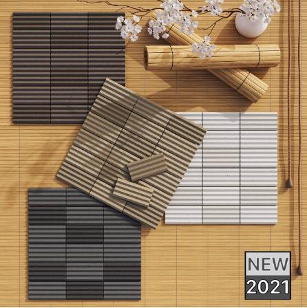Lấy ý tưởng từ những tấm Rèm tre (Sudare) trong kiến trúc nhà cổ Nhật Bản, bề mặt gạch Wavy Mosaic được thiết kế với những đường gợn sóng tinh tế. Khi ốp lên tường, nó không tạo cảm giác nặng nề của đá tảng mà mang lại sự thoáng đãng, nhịp nhàng như những nan tre đan cài vào nhau.