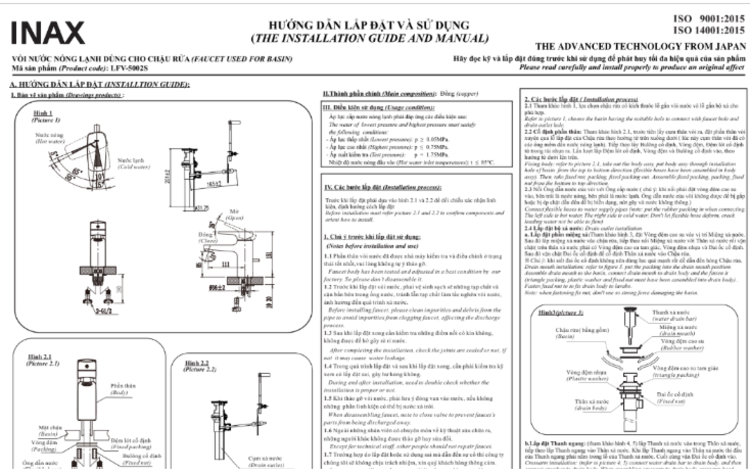 Hướng dẫn lắp đặt và sử dụng sen vòi đơn LFV-5002S