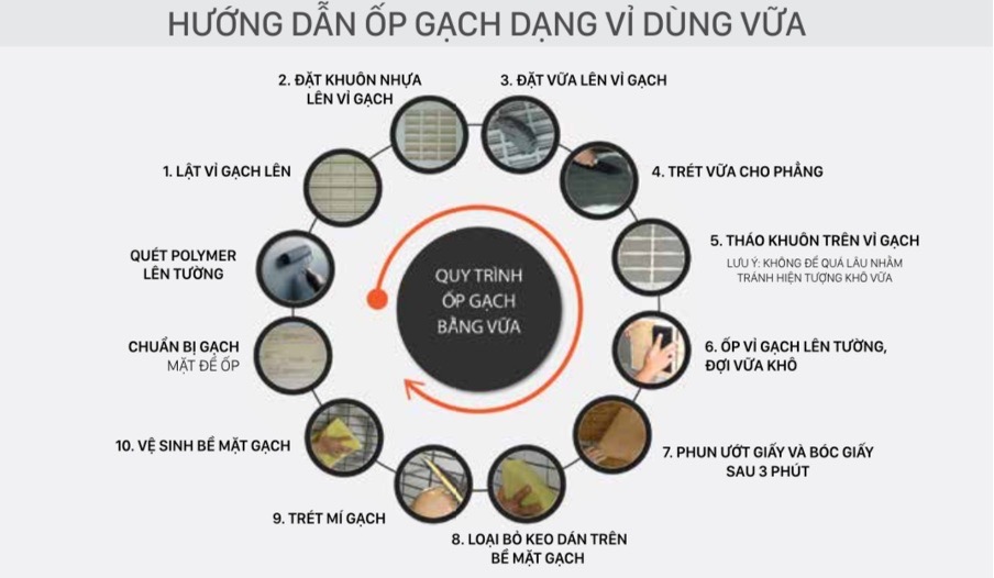 3. Quy trình 5 bước ốp gạch dạng vỉ bằng vữa