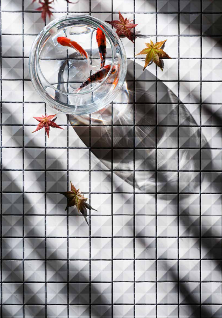 Lấy cảm hứng từ nghệ thuật gấp giấy cổ xưa, gạch Delta sở hữu các nếp gấp và khía cạnh 3D sắc sảo. Điều này tạo nên vẻ ngoài hình học hiện đại nhưng vẫn tôn vinh sự chính xác tinh tế của Origami.
