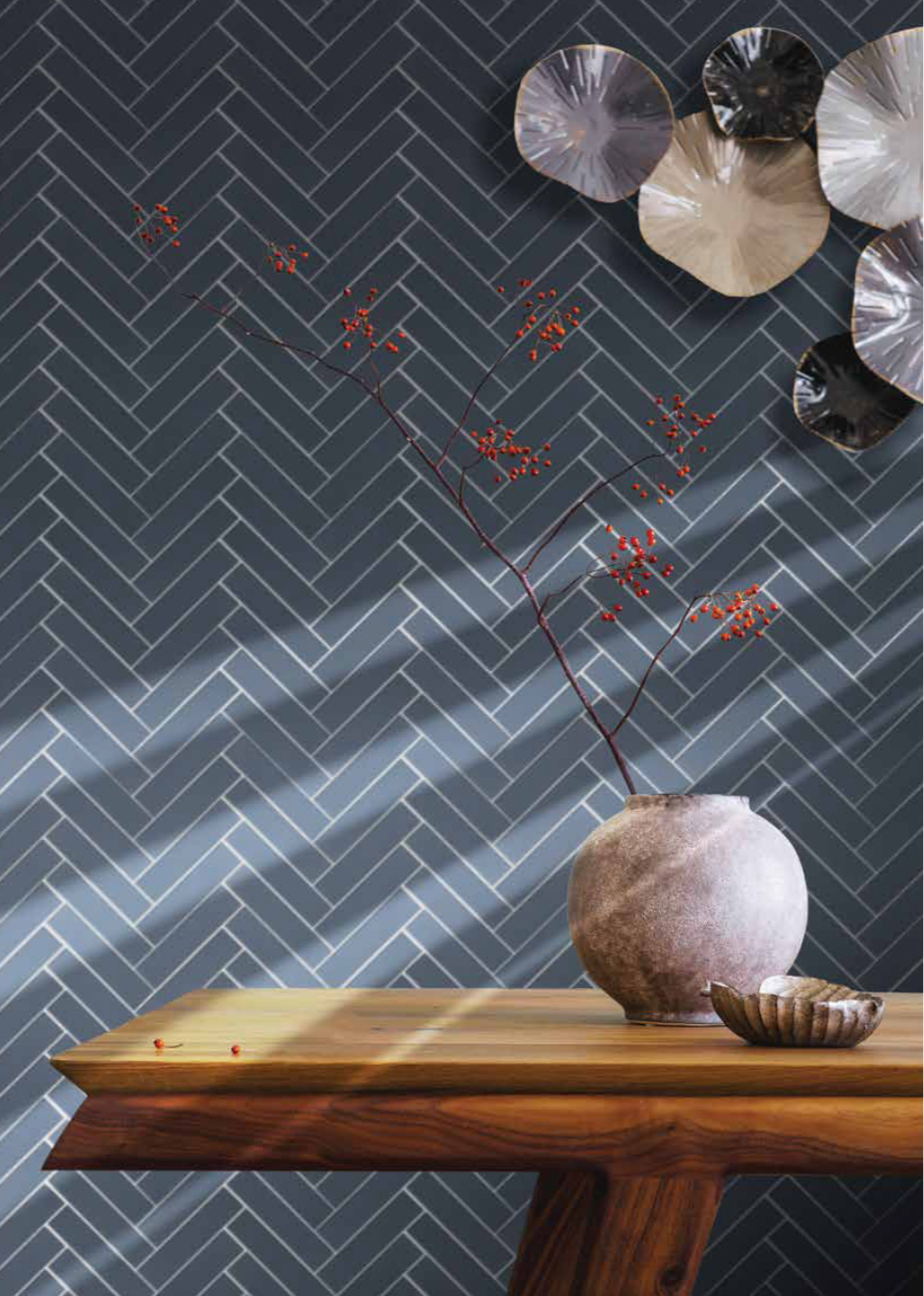Bộ sưu tập này sử dụng họa tiết xương cá cổ điển, một mô hình lịch sử tượng trưng cho cấu trúc và sự chuyển động. Nó tạo ra cảm giác đối xứng mạnh mẽ và nhịp điệu kiến trúc cho không gian.