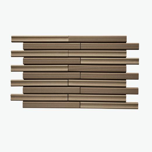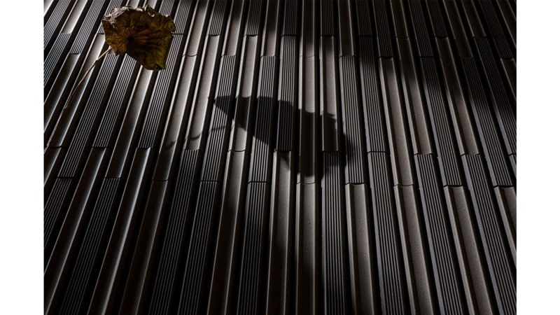 1. Thiết kế "Thân Tre" độc bản Mỗi viên gạch Takeborder được tạo hình với bề mặt cong nhẹ, giống như một đốt tre được chẻ đôi. Khi ốp lên mảng tường lớn, các đường cong này tạo ra hiệu ứng đổ bóng mềm mại, thay đổi nhịp nhàng theo góc chiếu của ánh sáng mặt trời, giúp bức tường trở nên sống động và có hồn hơn.